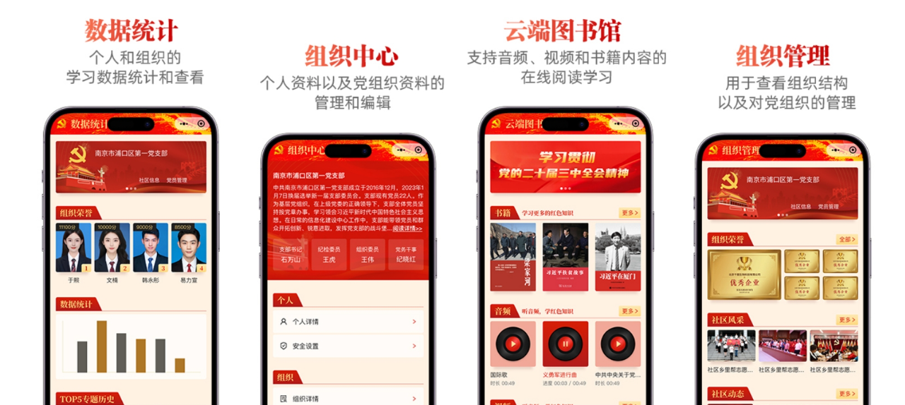 AI 党建学习站的「支部管理系统」提供“用户自定义” 与 “本地信息编辑” 功能,支持根据党支部组织架构、荣誉成果、党员学习标兵事迹、社区动态等个性化信息,进行自由编辑与展示。同时,可灵活扩展 “内容模块”,全方位展现党支部组织风采与学习成果。