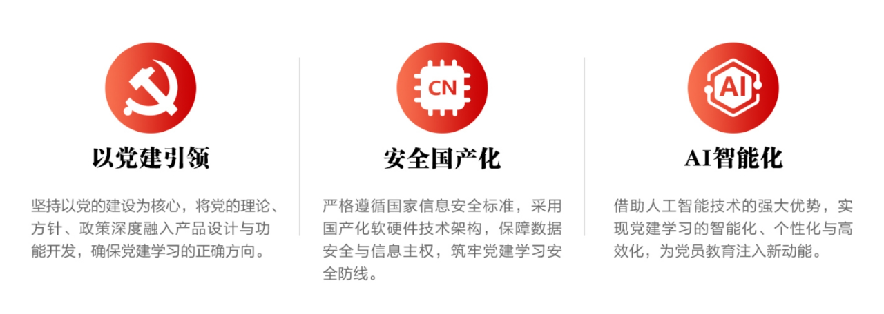 AI 党建学习站深度贯彻落实党中央关于推进 “数字党建” 高质量发展的战略部署,作为国内首款国产化 AI 智能党建学习系统,“以党建引领、安全国产化、AI 智能化” 为核心理念开发,深度融合新质生产力发展要求,构建集党史回顾、政策研学、理论践行于一体的全场景数字化党建学习生态,为新时代党员教育提供智慧化、国产化、体系化解决方案,助力筑牢意识形态主阵地,锻造政治过硬、本领高强的先锋队伍。