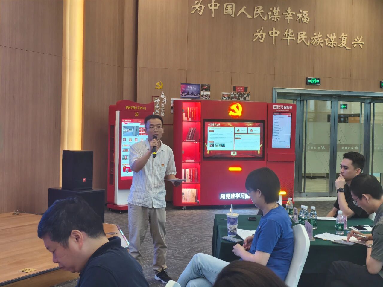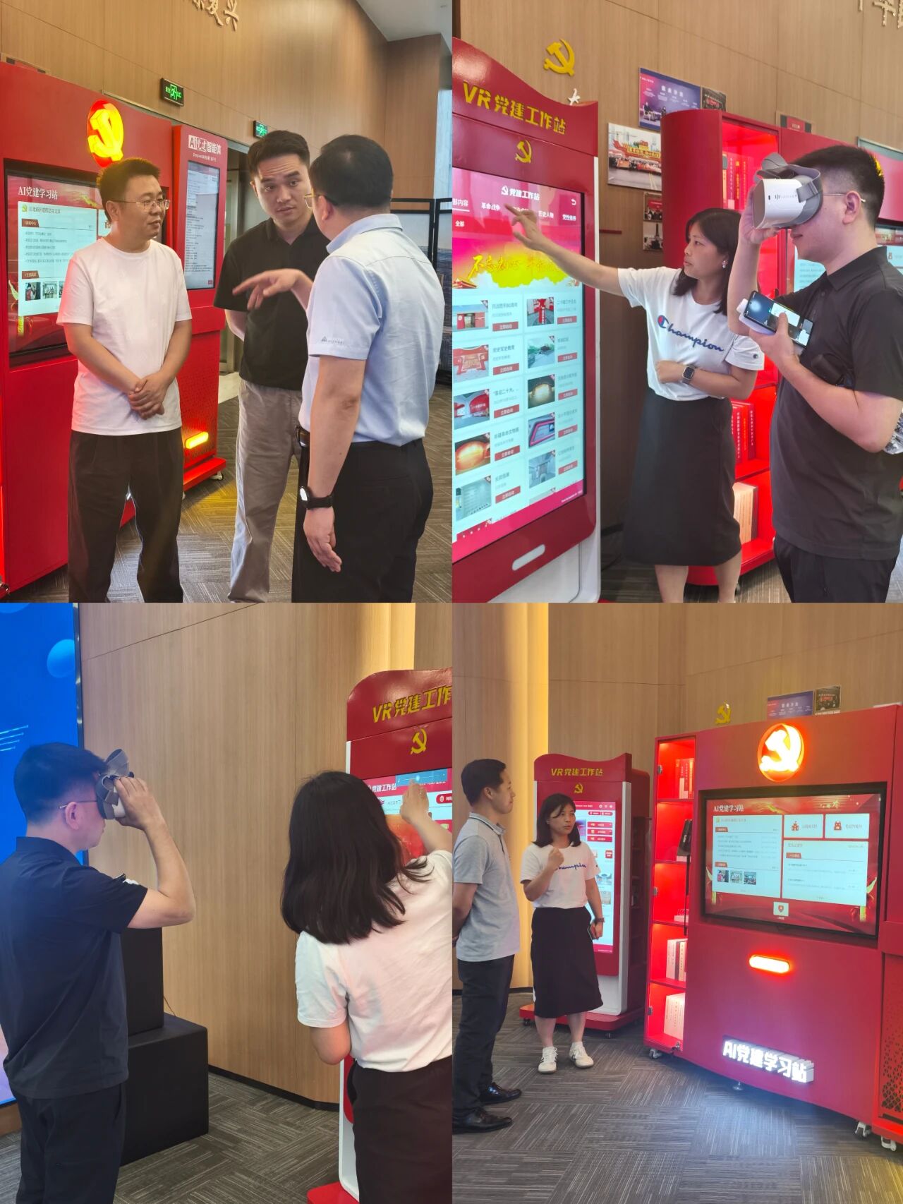 在本次研讨环节中,大家一同参观体验超级队长AI党建学习站、VR党建工作站系列党建产品,创新型沉浸式党建学习体验,引发了与会企业代表的热烈讨论。