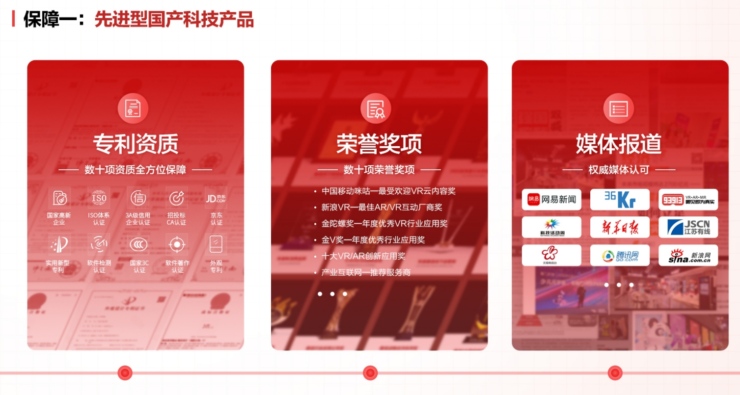 VR党建工作站「AI升级版」秉持“安全国产化、科技元宇宙、以人民为中心”的核心理念,致力于提供安全可靠、技术先进、体验优质的数字化党建产品。