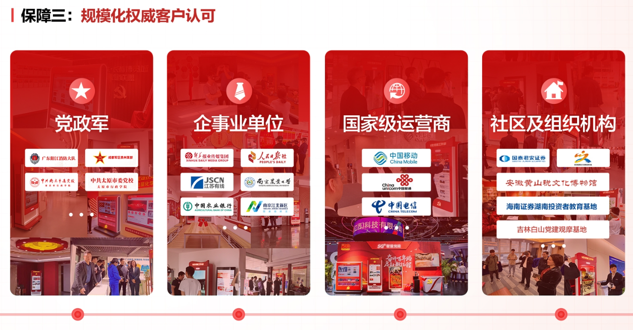 “超级队长”——江苏省专精特新企业、国家高新技术企业,江苏省科普教育基地、京东自营入驻企业。致力于提供VR/AI数字党建解决方案的服务商,其数字化党建产品已覆盖全国300+城市,落地数万个终端,服务数十万人次,服务客户包括“人民日报、新华日报、中国移动”等各级单位。