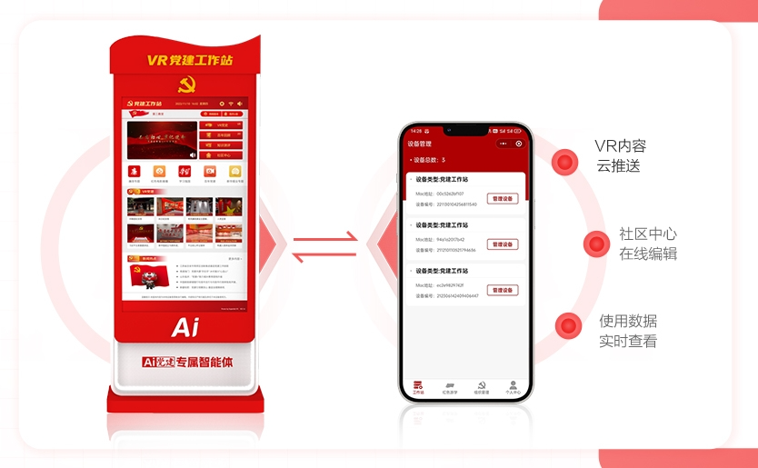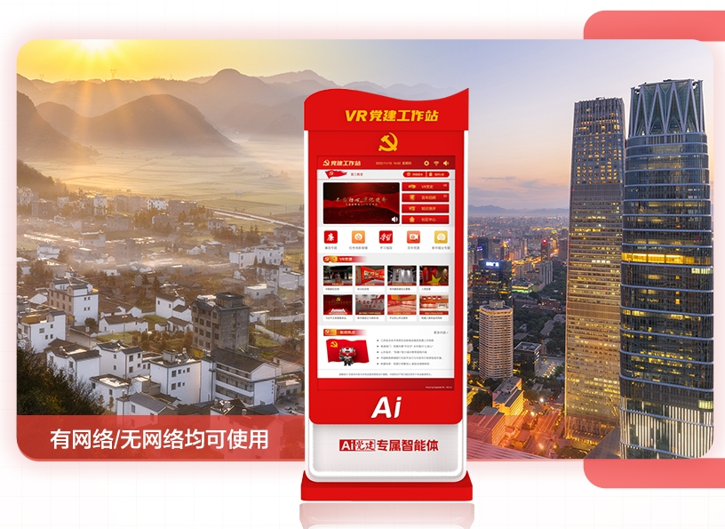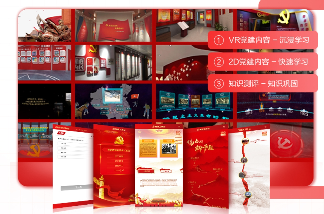 以人民为中心的普惠型党建产品,一台设备提供2D(大屏互动)、VR(沉浸交互 )两种学习方式;支持双模式交付,单机与网络模式确保产品在各种应用环境下均可体验。数字化党建学习方式,全面提高党员和人民素质。