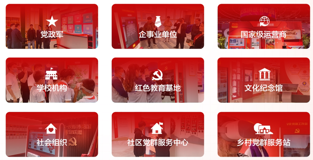 VR党建工作站「AI升级版」广泛适用于党政军、企事业单位、国家级运营商、学校机构、红色教育基地、文化纪念馆、社区党群服务中心、乡村党群服务站、社会组织等多元化场景!